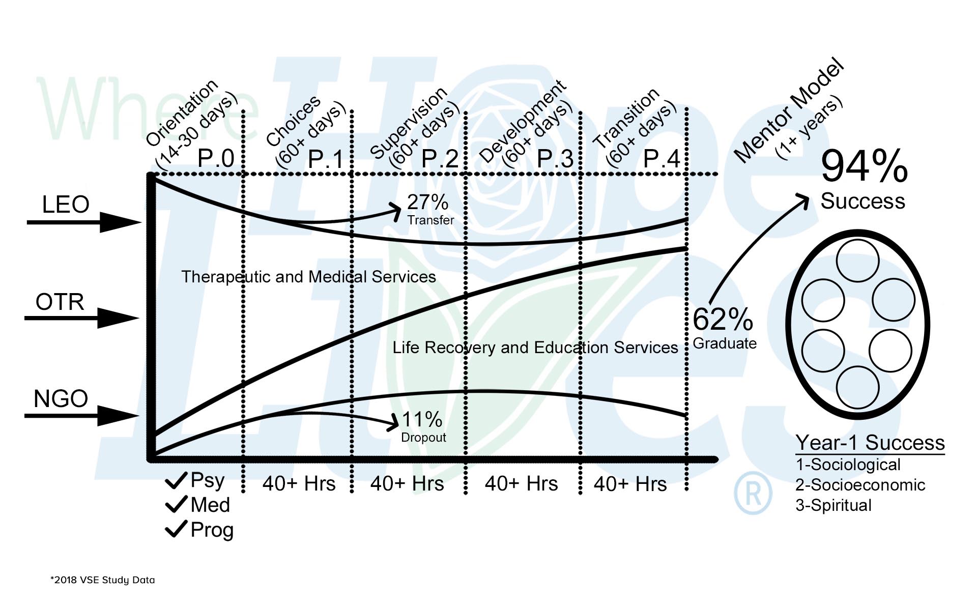 We’re proud to report that our 2022 Quality Assurance Report showed that program graduates had a 94% Success Rate that held for at least one year after they completed the program. We measure 15 variables in 3 key areas of life to determine our success rate. This rate came by way of a 62% program completion rate, a 25% transfer to higher level of care rate, and a 13% drop out / relapse rate.